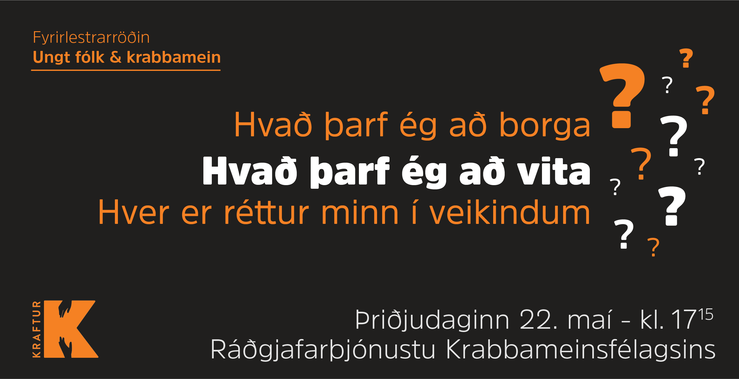 Næsti fyrirlestur i fyrirlestaröð Krafts „Ungt fólk og krabbamein“ verður haldinn þriðjudaginn 22. maí kl 17.15 í húsakynnum Krafts, Krabbameinsfélaginu, Skógarhlíð 8, Reykjavík.
